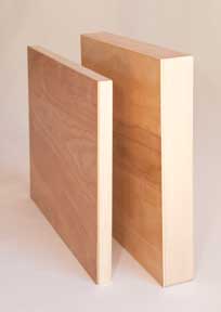 We offer Okume Mahagony 4mm thick, 3 ply, thick face, marine grade plywood for facing our panels. This wood is designed for boat building and is insured by Lloyds of London for $50,000 and is manufactured in France. We consider it the best available. It is rotary cut which means its a continuous piece with no splices. The marine grade glue is very moisture resistant, and the mahogany wood is naturally insect resistant and has an open grain that provides a bit of texture to capture the artist's paint. The substrate, or 'bones' of the panel support are made of kiln dried basswood which is a very lightweight hardwood, lighter than pine, with no knots or blemishes and has a very straight, true grain which is guaranteed not to warp or twist. Basswood is also very close to PH neutral which is good from an art conservation stand point.